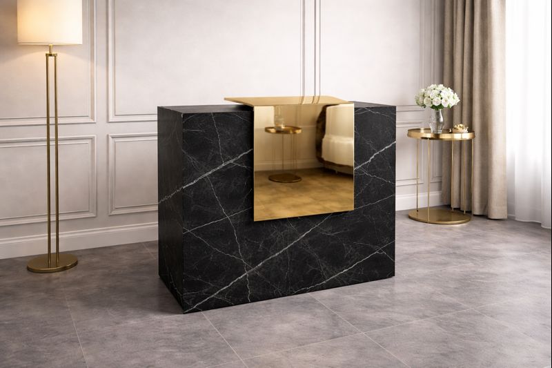Strona główna » Lady recepcyjne » Lada Recepcyjna Loko Gold Marmur Złote Lustro 140cm HIT