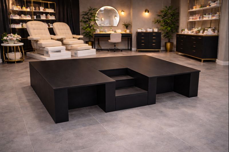 Funkcjonalny i solidny podest dwustanowiskowy do pedicure zaprojektowany z myślą o komforcie pracy stylistek oraz wygodzie klientek.Idealne rozwiązanie do salonów kosmetycznych i podologicznych, gdzie liczy się ergonomia, estetyka i trwałość.