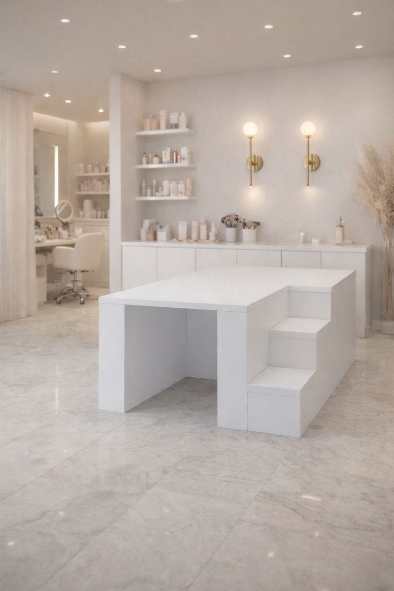 ✔ Możliwość łączenia kilku podestów w jedno ciągłe stanowisko – idealne rozwiązanie dla większych salonów