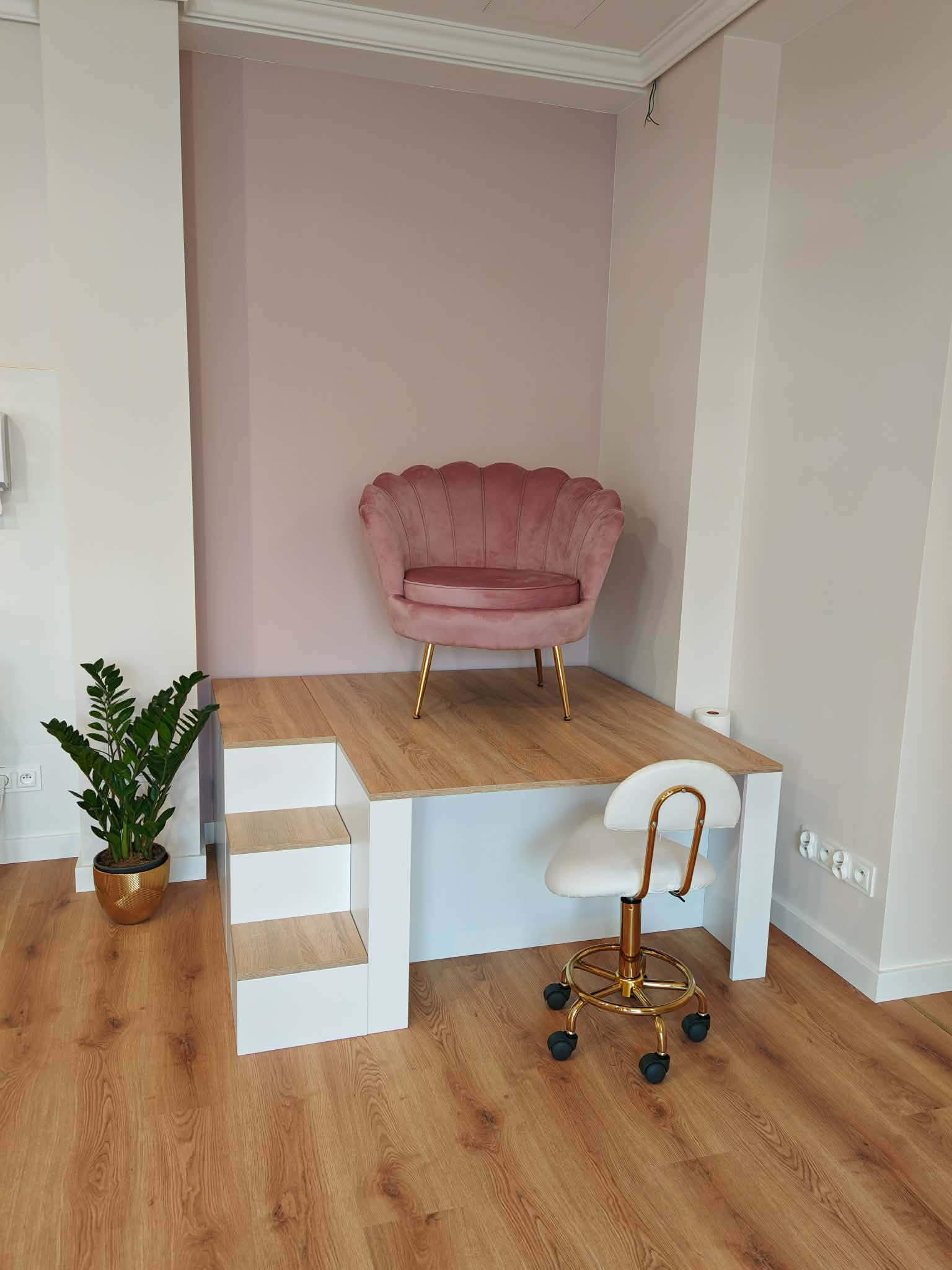 Funkcjonalny i solidny podest do pedicure zaprojektowany z myślą o komforcie pracy stylistki oraz wygodzie klienta. Idealne rozwiązanie do salonów kosmetycznych i podologicznych, gdzie liczy się ergonomia, estetyka i trwałość.
